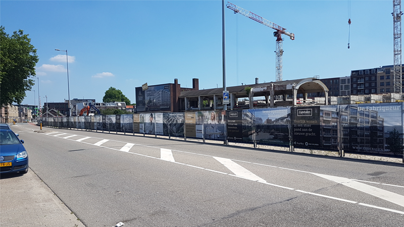 Tevens schermen bouwhekdoeken de bouwplaats af voor een net en rustig straatbeeld.