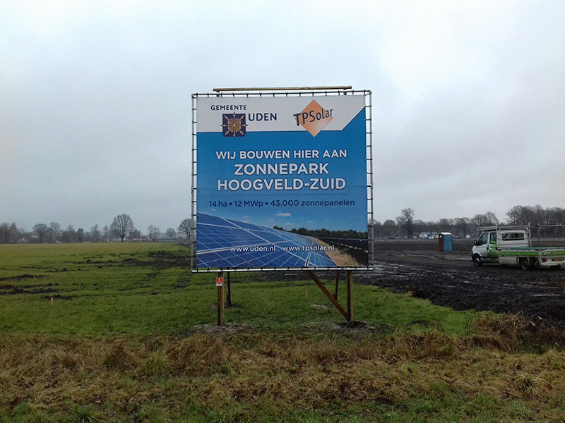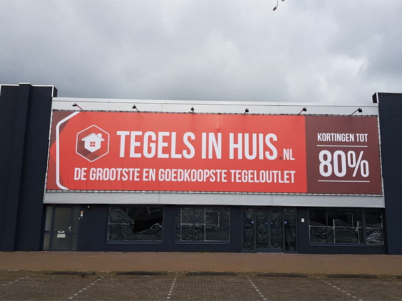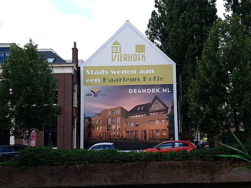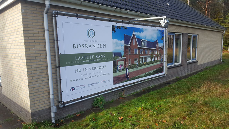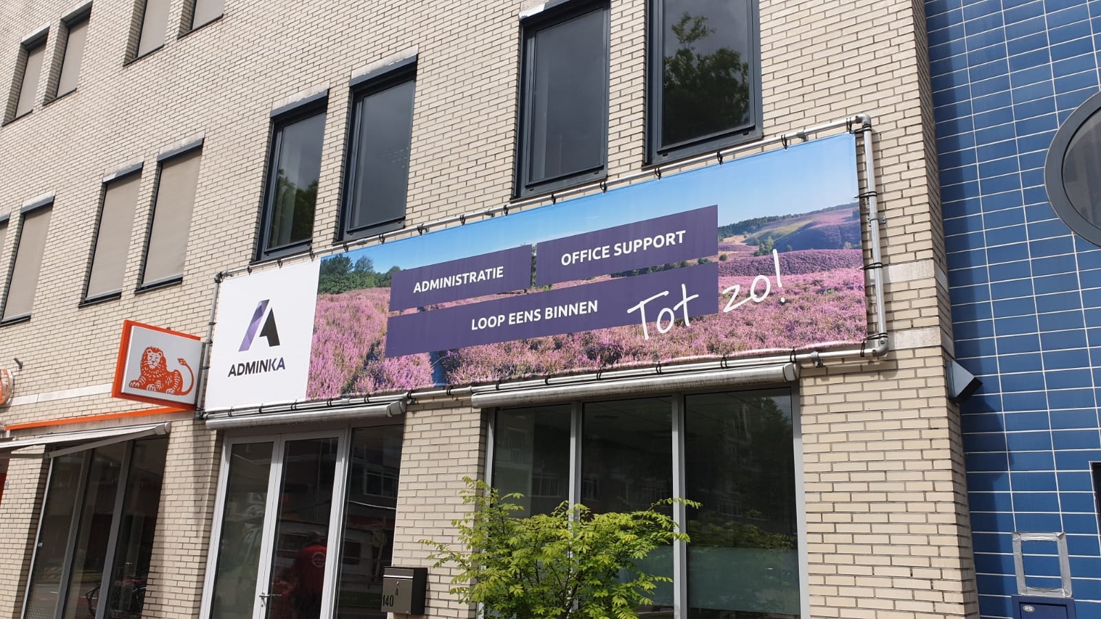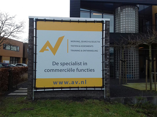 Als een bord (op constructie) geen optie is of niet gewenst is, is doek een prima alternatief met vele mogelijkheden.