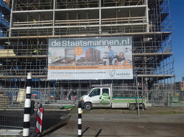 Doeken worden veel gebruikt als de gevel of steiger de enige mogelijkheid biedt voor een reclame-uiting.
