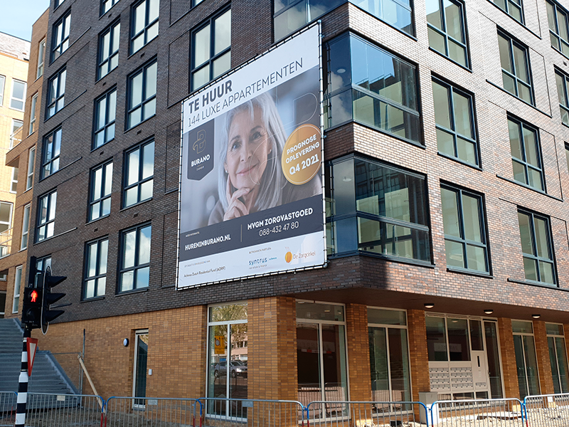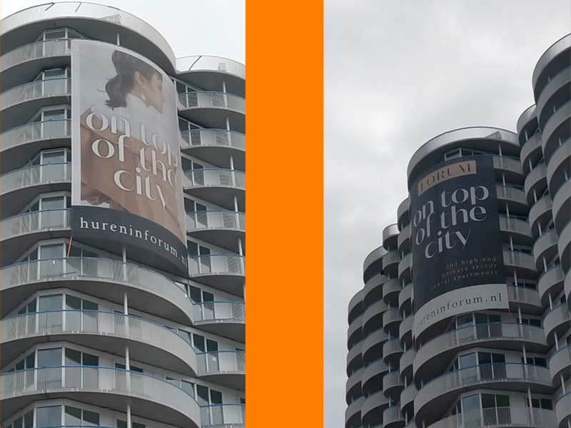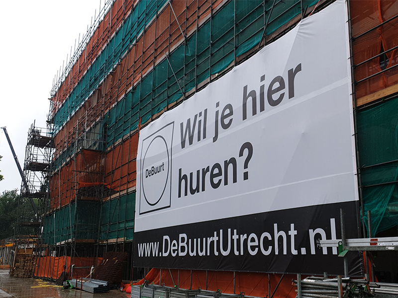 Vereist de locatie een nog meer winddoorlatend materiaal dan meshdoek, bieden wij ook een alternatief met een nog meer open structuur. Ondanks de zeer open structuur van dit materiaal, verliest de boodschap niet zijn communicatiewaarde. Informeer gerust naar de mogelijkheden.